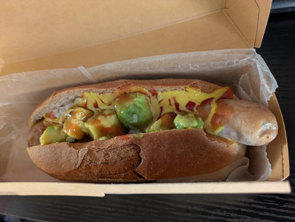 バンズからはみ出すボリューム満点のソーセージが印象的でした。