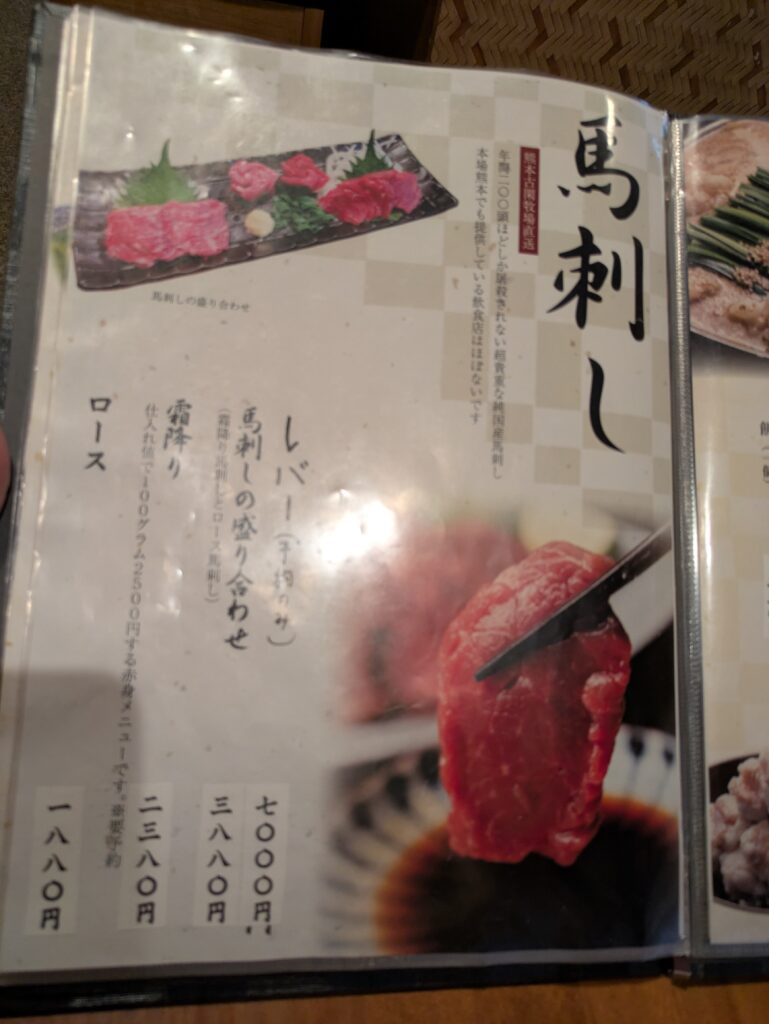看板メニューのもつ鍋と馬刺しだけでも