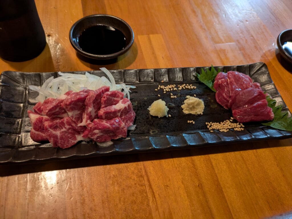 馬刺しはご当地のオススメ醤油で