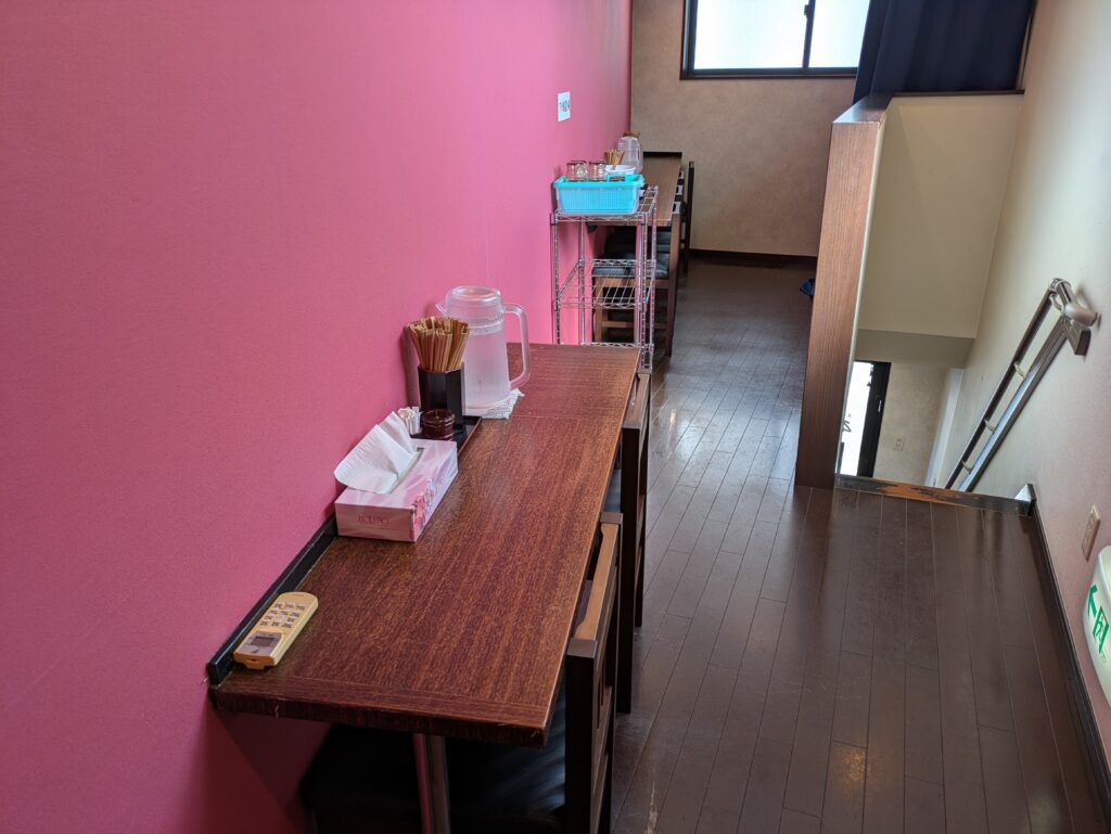 2階の様子は壁に面したカウンター席が2つ。