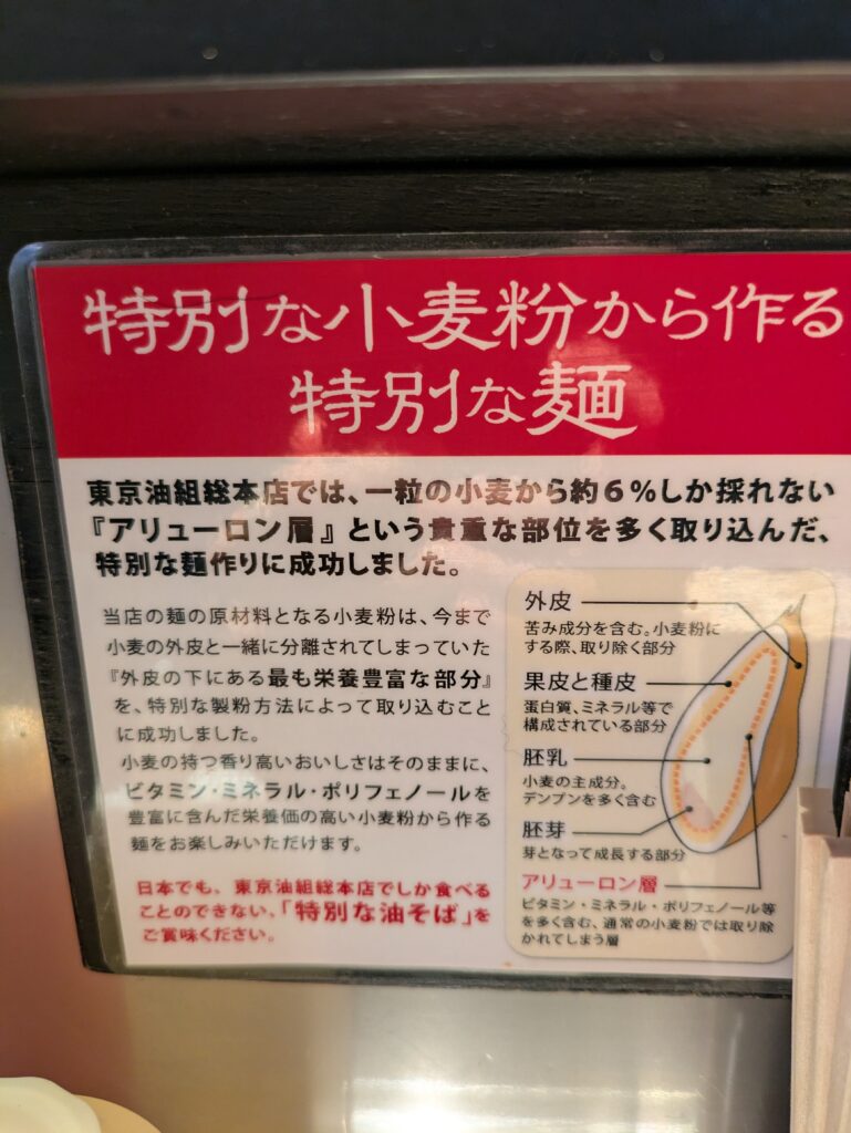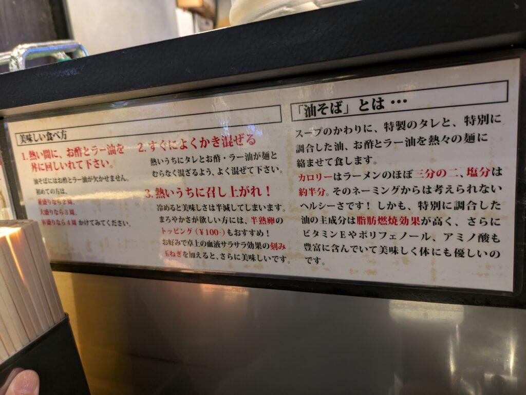 『油そば』の食べ方が席に提示されている