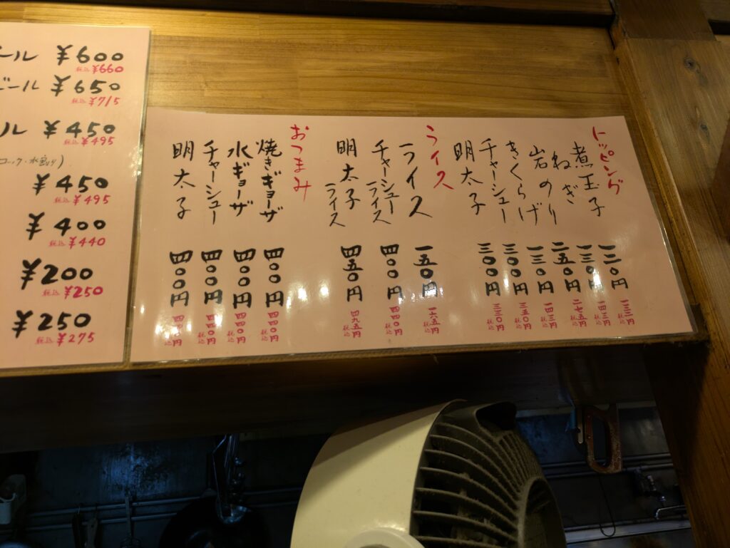 カウンターの木目も、壁の張り紙も、どこか時間が止まったような安心感。