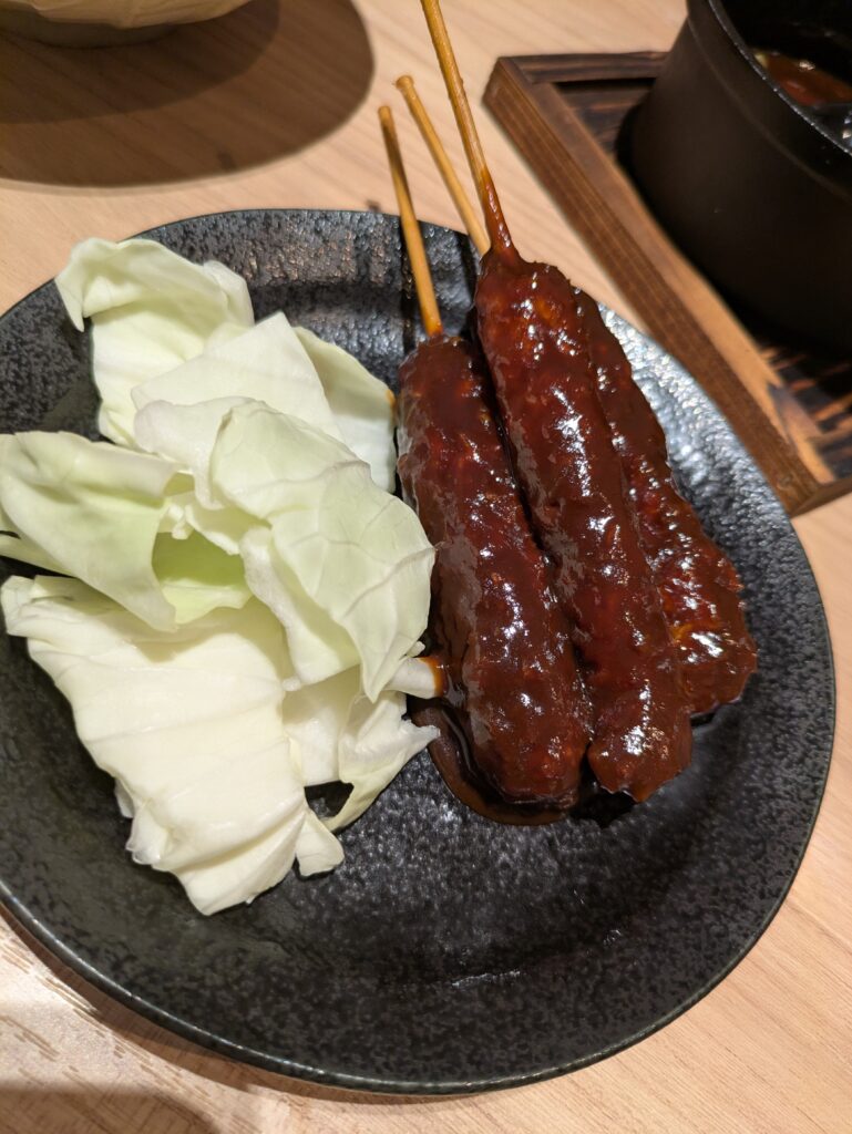 どて煮、味噌串カツ、山ちゃんサラダ、そして締めに台湾ラーメン。
